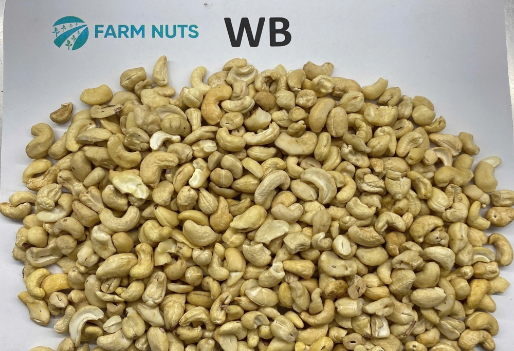 WB stands for White Butts, referring to cashew kernels that are broken crosswise. These kernels are known internationally as White Butts Cashew Nuts.